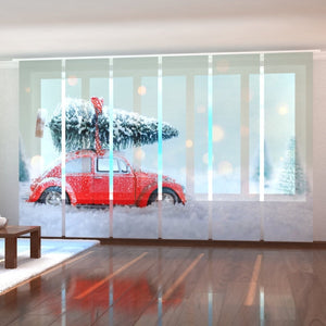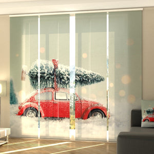 Foto-Schiebegardine "rotes Auto und Weihnachtsbaum"- Normaler Preis
