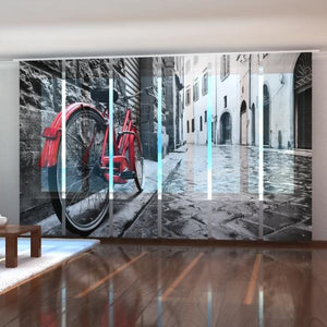 Foto-Schiebegardine "rotes Fahrrad in der Stadt"- Normaler Preis