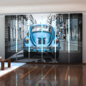 Foto-Schiebegardine "blauer Oldtimer"- Normaler Preis